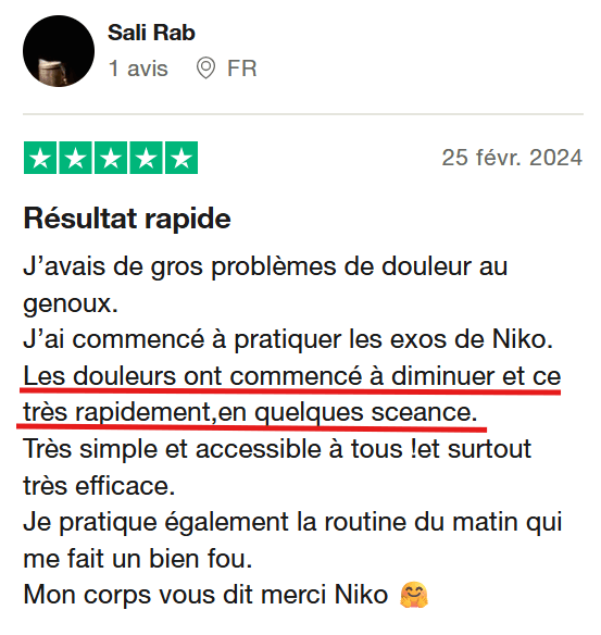 Aujourd'hui, j’ai sélectionné les exercices les plus efficaces dans le programme “Genoux Forts et Sans Douleurs” pour permettre à n'importe qui de soulager ses douleurs de genoux en seulement 12 minutes par jour.